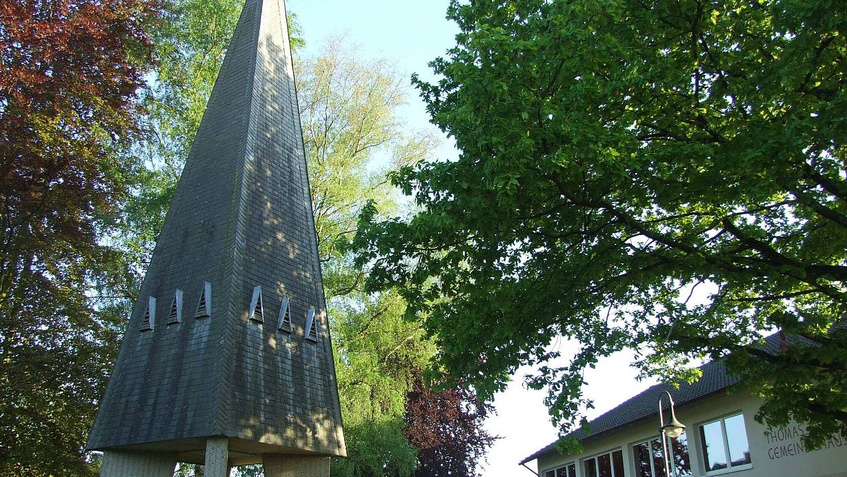 Das Thomas-Gemeindehaus mit seinem markanten Kirchturm gibt die Andreas-Gemeinde Lübbecke Ende 2026 auf. Das Gebäude ist Ende der 50-er Jahre des vorigen Jahrhunderts gebaut worden. | © Karsten Schulz