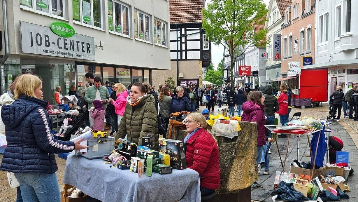 Am Sonntag ist die Fußgängerzone beim Kinderflohmarkt mit vielen Ausstellern und Schnäppchenjägern gut gefüllt. | © Alexandra Stratmeier