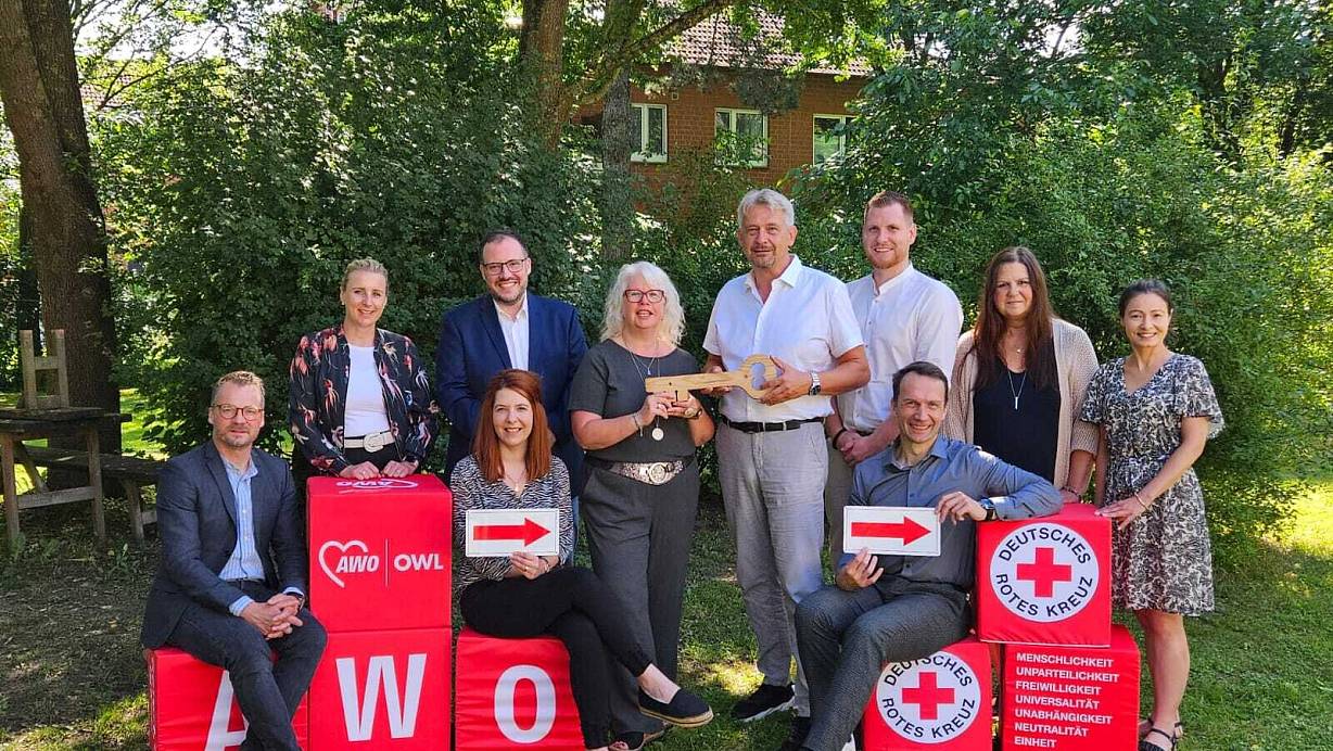 Freuten sich über den gelungenen Übergang beim Trägerwechsel: Philipp Knappmeyer (v. l.), Daniela Beckermann-Beihl, Ina Di Bella, Jan-Hendrik Stute, Sabine Schubert, Andreas Besser, Tobias Tische, Michael Kasche, Martina Teske und Jasmin Feßer. | © Alexandra Stratmeier