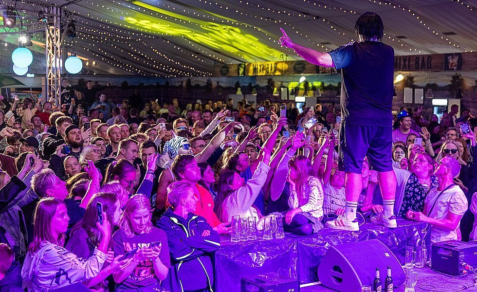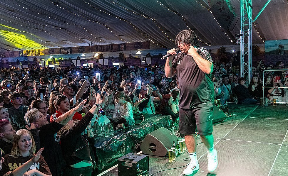 - Partyschlagersänger Ikke Hüftgold („Ich schwanke noch“) begeisterte am Donnerstagabend mit seinem Auftritt in Meiers Deele. Lange mussten die Fans auf ihn warten, er steckte im Stau und erreichte die Bühne fast zwei Stunden zu spät.