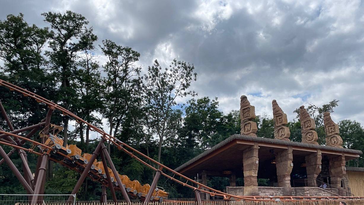 Wilde Fahrt: In der neuen Achterbahn "Braus & Saus" werden Fahrgäste in hohem Tempo durch eine steinzeitliche Waschstraße geschickt. | © Sandra Spieker