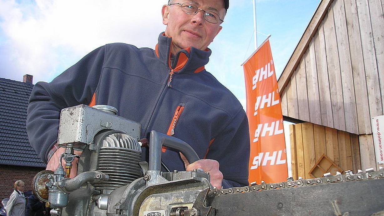 Wie der Name schon sagt: Nicht moderne Kettensägen sind es, die das Herz von Siegfried Meier in den höchsten Tönen schlagen lassen, sondern Altmaschinen, Oldtimer. Allein schon diese Kraft: Meiers liebstes Stück, eine Anfang der 1960er-Jahre gebaute Stihl 090, mobilisiert acht PS aus 125 Kubikzentimetern Hubraum. "Die Kraft kommt von unten, bei niedriger Drehzahl", erklärt der Sprecher. "Das ist fast wie Motorradfahren."