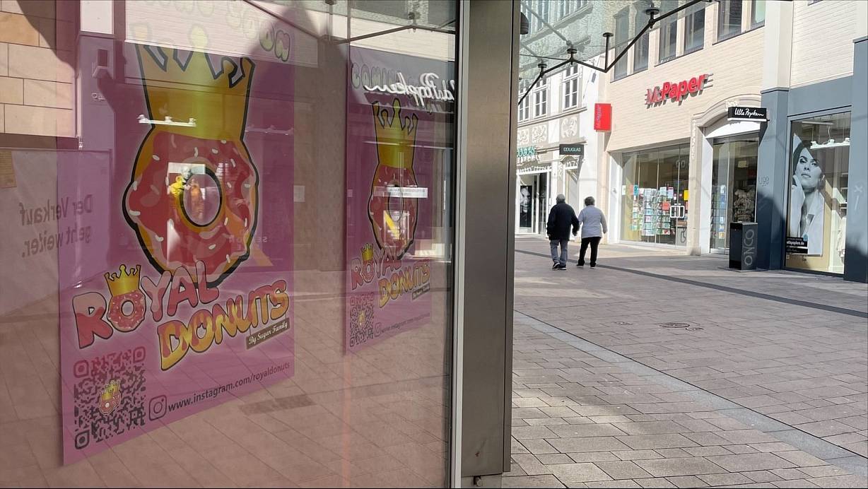 Abgeklebtes Schaufenster, Poster mit der Ankündigung zur Neueröffnung: Die „Royal Donuts" Filiale soll ab Mitte Mai ein fester Bestandteil der Mindener Bäckerstraße sein. | © Patrick Schwemling