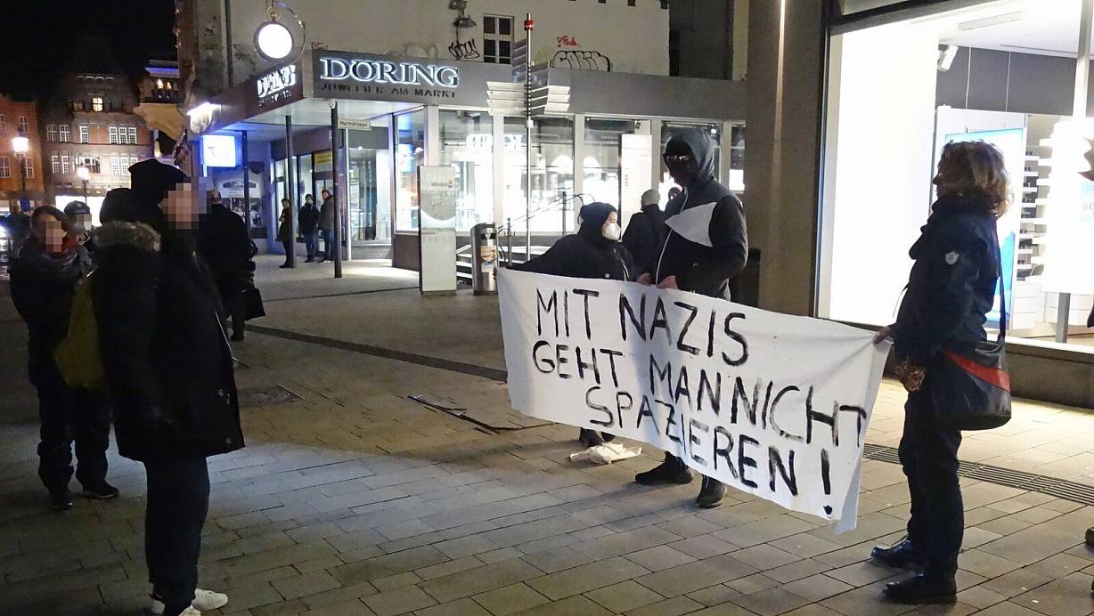 Drei Protestler platzierten sich am 17. Januar am Mindener Scharn neben der Route der Demonstranten gegen Corona-Maßnahmen. Dafür bekamen die Gegendemonstranten eine Anzeige. | © MT-Archiv