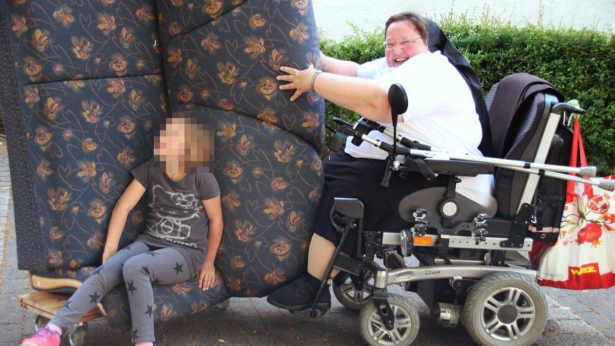 Ihr elektrischer Rollstuhl ermöglichte es Schwester Annette Stuff, am Leben teilzunehmen – wie bei einer Aufräumaktion der Caritas vor vier Jahren. Vergangenes Wochenende wurde ihr Rollstuhl gestohlen. | Detlef Mueller/privat © Alle Rechte vorbehalten