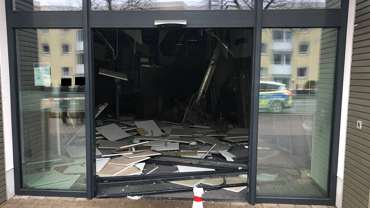 Nach der Explosion ist die Filiale der Volksbank offenbar massiv beschädigt. Anwohner waren durch den lauten Knall aufgeschreckt.
