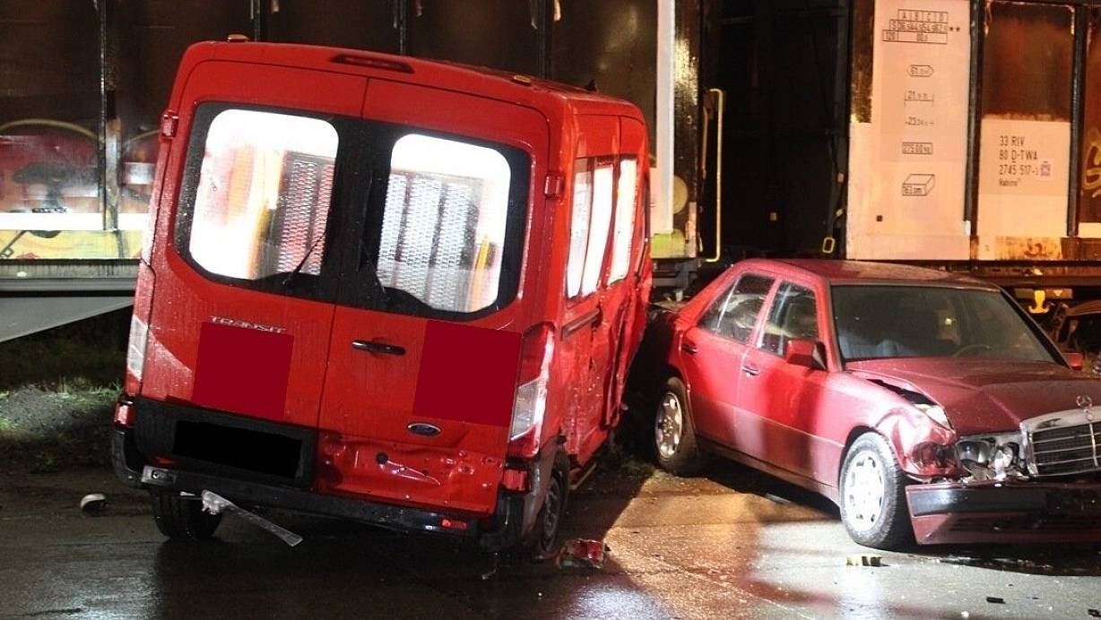 Ein Güterzug der Mindener Kreisbahn befuhr die hauseigene Bahnstrecke in Richtung Bismarckstraße in ihrer Abwesenheit. Der 48-jährige Triebfahrzeugführer aus dem Landkreis Nienburg konnte auf der kurvigen Strecke das Hindernis bei Dunkelheit und Nieselregen offenbar erst im letzten Moment erkennen. Trotz Gefahrenbremsung bei geringer Geschwindigkeit kam es zur Kollision mit der rechten Fahrzeugseite des Ford Transit.