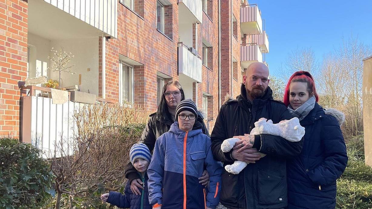 Mareike Wiese und ihre Söhne Marek Lennox (6) und Marlon Alexander (13) sowie Nico Krause und Diana Rose mit Tochter Liara Sophie sind vom LEG-Kundenservice enttäuscht - vier Tage war die Heizung kalt. | © Nina Könemann (MT)