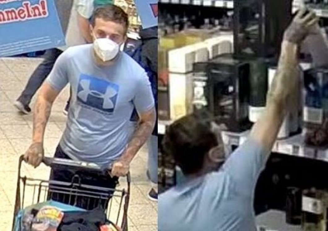 Der schlanke und dunkelhaarige Mann trug zur Tatzeit ein blaues T-Shirt, eine dunkle Hose und einen hellen Mund-Nasen-Schutz. Besonders markant sind die großflächigen Tätowierungen auf beiden Unterarmen und dem Handrücken sowie ein dreieckiges Tattoo an der rechten Halsseite des Tatverdächtigen.