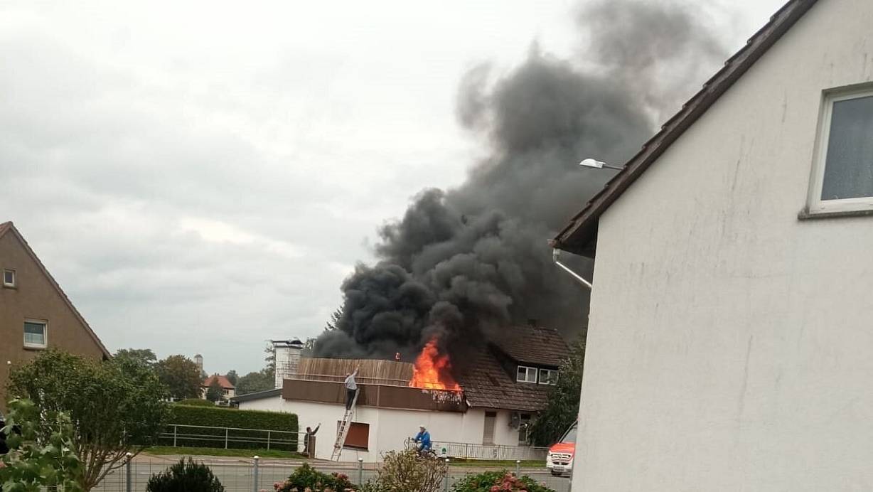 B65 zeitweise voll gesperrt: Rauchsäule von Feuer in Minden von weitem zu sehen