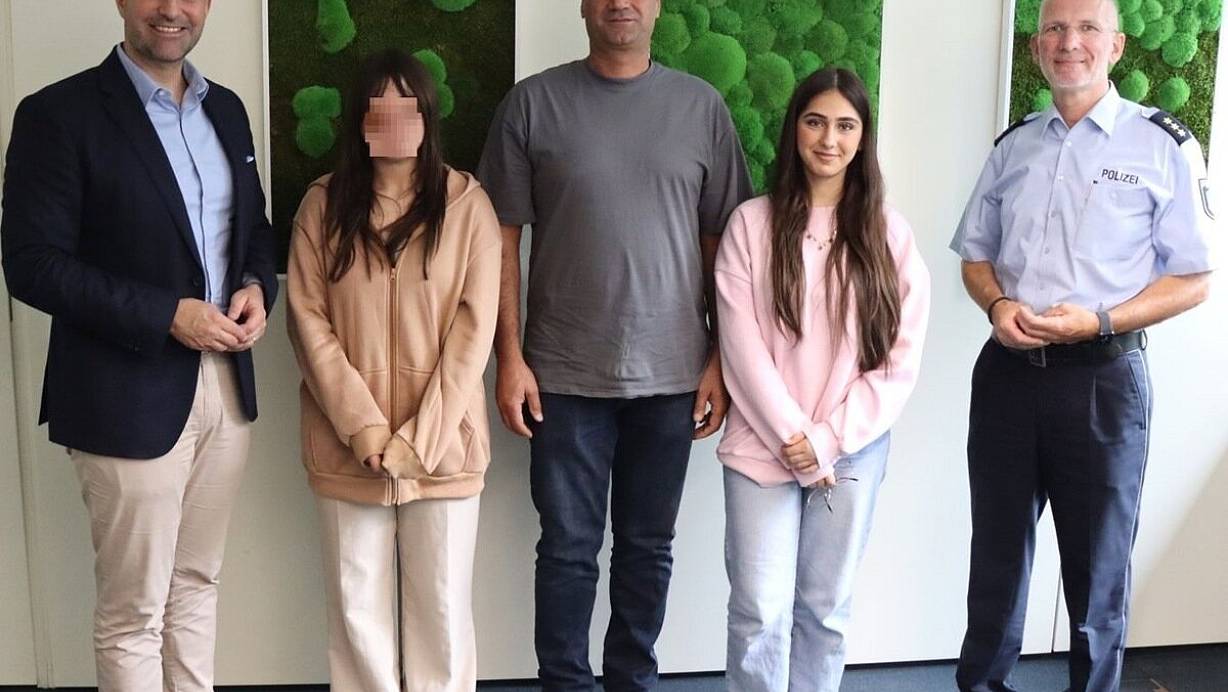 Unerschrockener Einsatz: Ein Vater-Tochter-Gespann hört eines Abends laute Hilfeschreie, eilt einer Nachbarin zur Hilfe und bringt sich damit selbst in Gefahr. Für diese Courage bedankte sich nun unter anderem Landrat Ali Dogan.