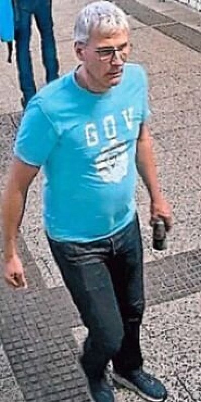 Der auf den Fotos abgebildete grauhaarige Brillenträger dürfte dem Anschein nach zwischen 50 und 60 Jahre alt, zwischen 175 und 190 cm groß und von schlanker Statur sein. Am Tattag trug er ein markantes blaues T-Shirt mit dem Aufdruck GOV, dunkle Sportschuhe mit heller Sohle und eine Jeans.