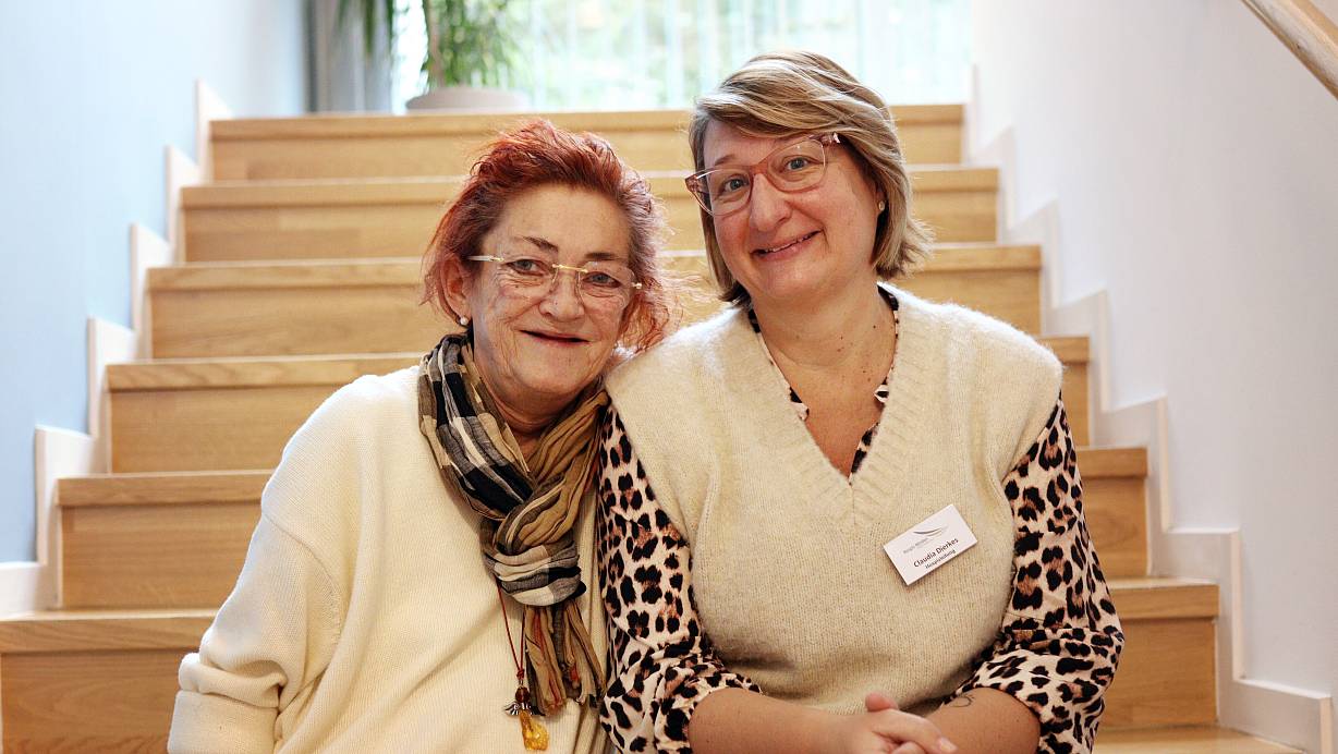 „Gestritten haben wir noch nie“: Gast Andrea Belte (links) und Hospiz-Leiterin Claudia Dierkes verstehen sich gut. | © Alex Lehn