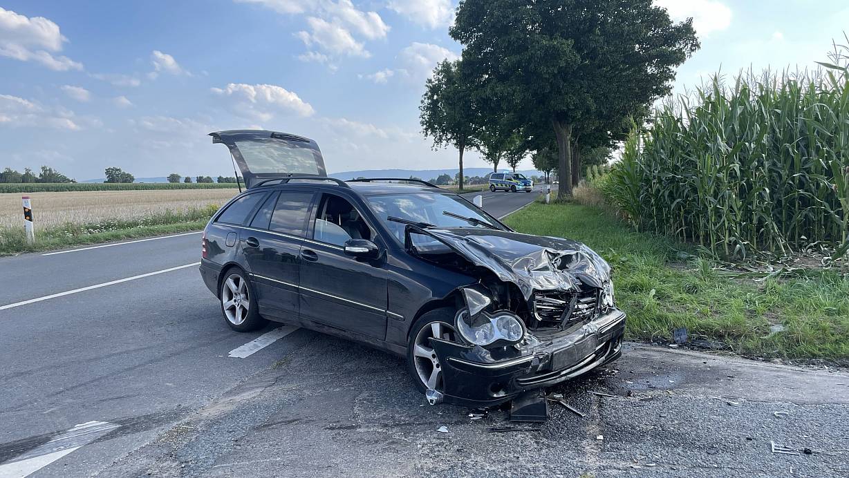 Der VW wurde nach dem Zusammenstoß in ein Maisfeld geschoben. Die Feuerwehr befreite den Mann aus dem Fahrzeug. Er kam mit lebensgefährlichen Verletzungen ins Klinikum.