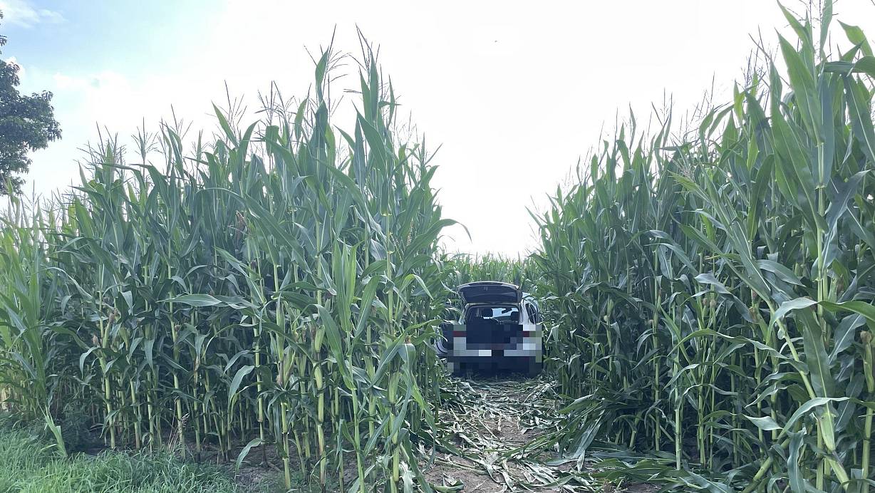 Der VW des Hillers wurde nach dem heftigen Zusammenstoß in ein Maisfeld geschoben. MT-Foto: