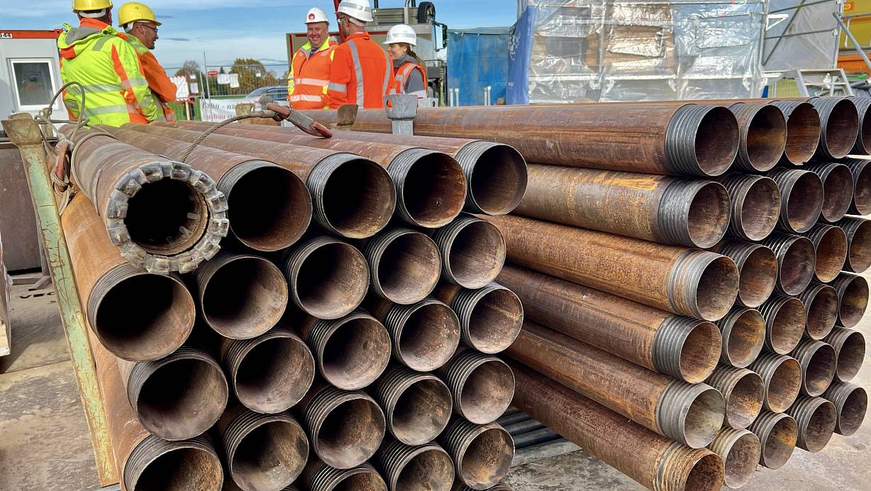 Am Bohrplatz in Nammen warten noch zahlreiche Rohre darauf, versenkt zu werden. | © Thomas Lieske