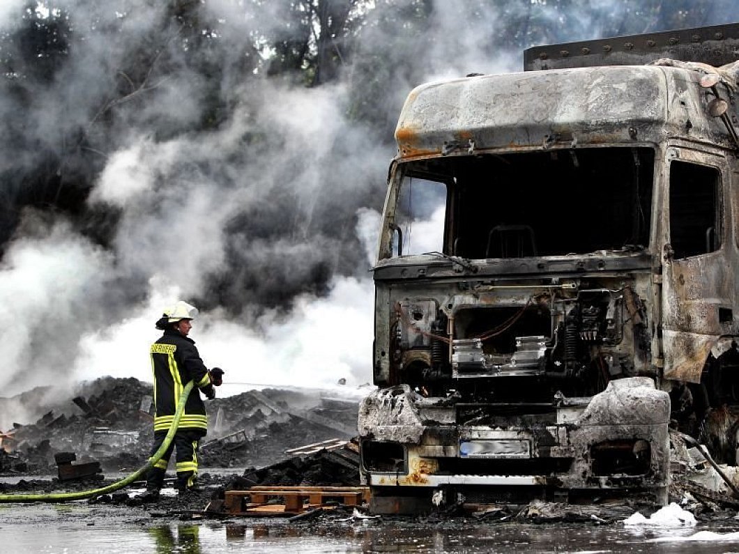 Nach Zeugenaussagen wurden die ersten Flammen im Bereich der beiden Gebäudeteile bemerkt. Durch das Feuer wurde auch ein auf dem Außengelände abgestellter kompletter Sattelzug samt Auflieger vernichtet. Zwei weitere dort geparkte Auflieger wurden ebenfalls beschädigt.