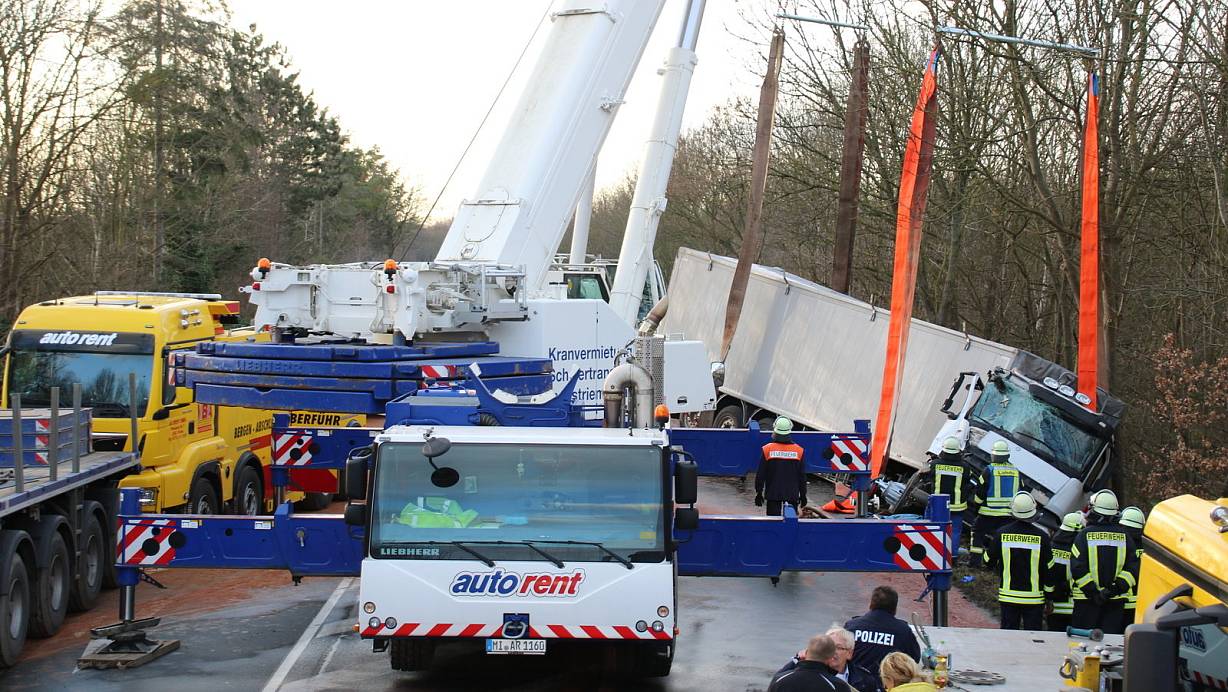 Unfall auf der L770: 100-Tonnen-Kräne bergen LKW