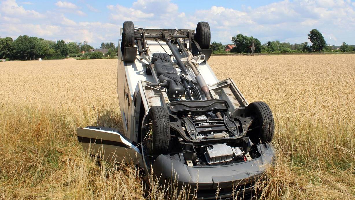 Den Erkenntnissen der Polizei zufolge war der 23-Jährige um kurz nach 15 Uhr aus Lahde kommend in Richtung Nienburg unterwegs. Aus bisher ungeklärten Gründen kam er nach rechts von der Straße ab. Der Wagen geriet auf den Grünstreifen, touchierte einen Leitpfosten und überschlug sich im angrenzenden Graben. Letztlich kam der Kleintransporter in dem Kornfeld zum Stillstand.