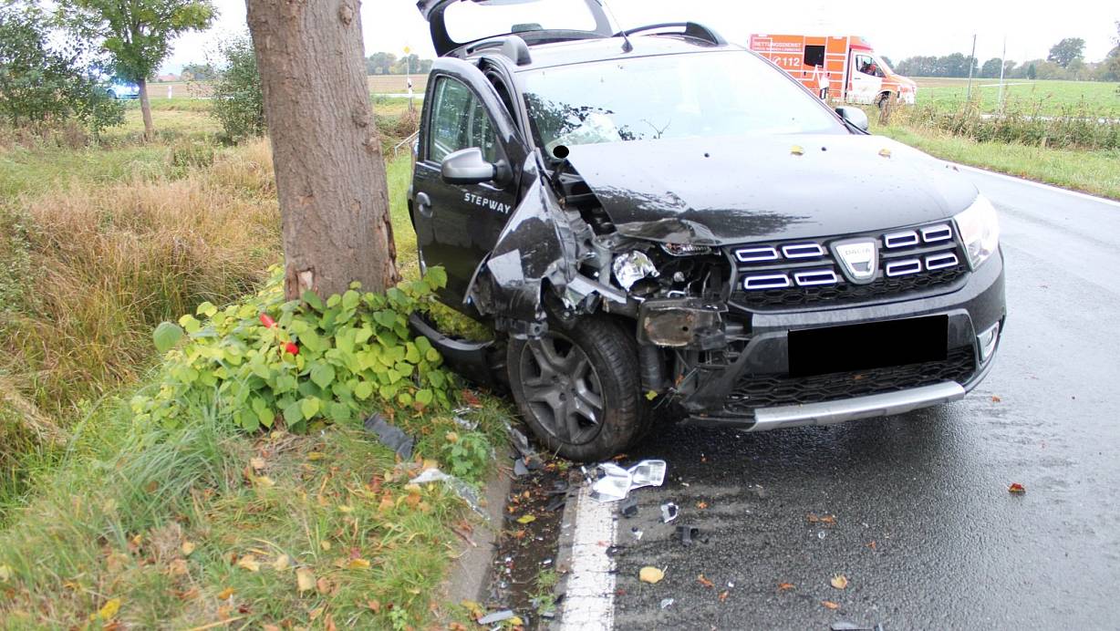 Die 25-jährige Fahrerin wird bei dem Unfall verletzt. Im Wagen befand sich außerdem ein 25-jähriger Beifahrer.