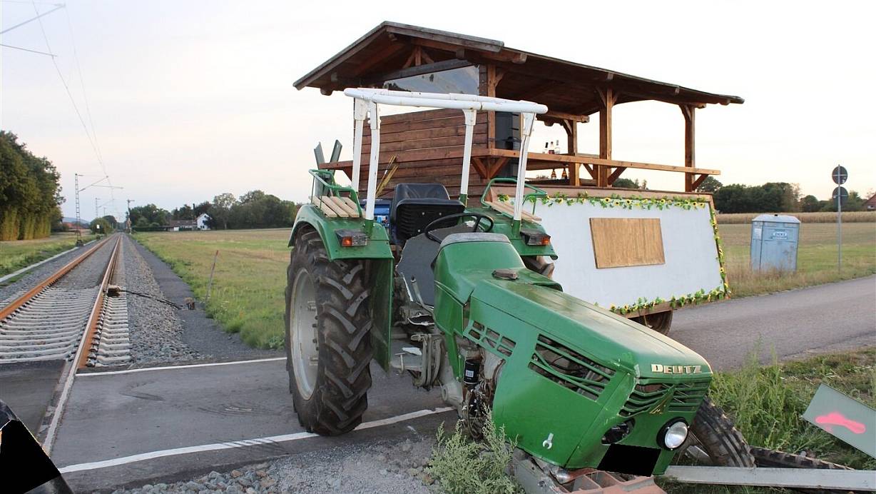 Petershagen. Ein Traktorgespann mit 13 Ausflüglern ist am Sonntagabend gegen 18.20 Uhr mit einer Eurobahn kollidiert. Dabei hatten alle Beteiligten laut Polizei großes Glück: Weder die Fahrgäste des Treckeranhängers noch jene des Zuges kamen zu Schaden.