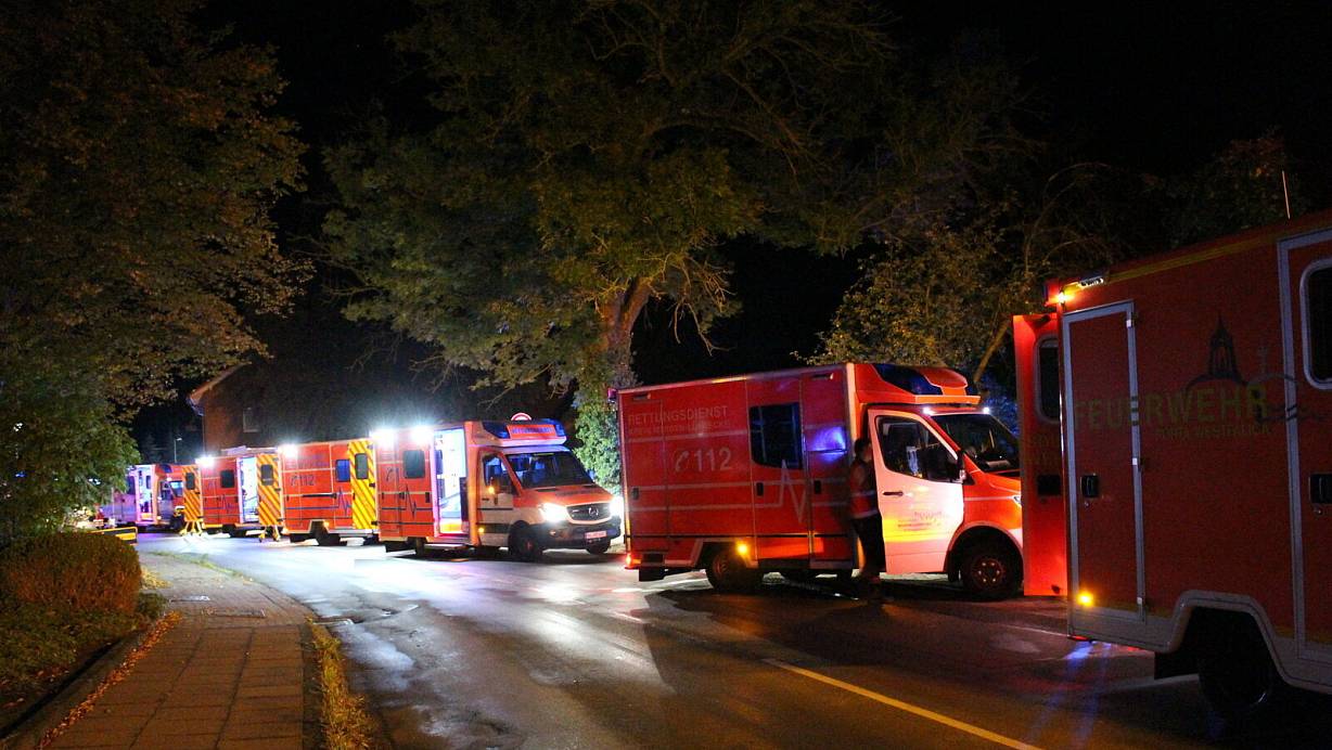 Neben neun Rettungswagen waren sechs Notärzte, sechs Notfallseelsorger und insgesamt zwölf Löschgruppen der Freiwilligen Feuerwehr Petershagen im Einsatz.