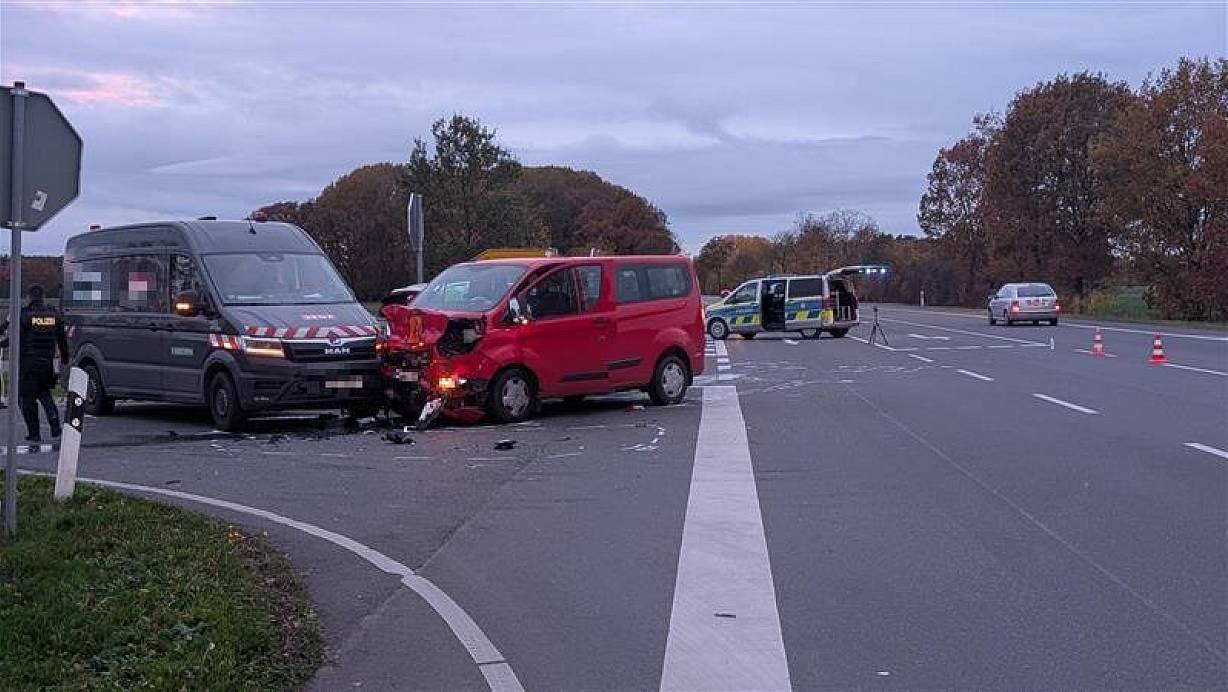 Ein VW-Fahrer hat nach ersten Erkenntnissen ein Auto übersehen. Die Verletzten wurden in die umliegenden Krankenhäuser gebracht. Die Polizei regelt den Verkehr vor Ort.