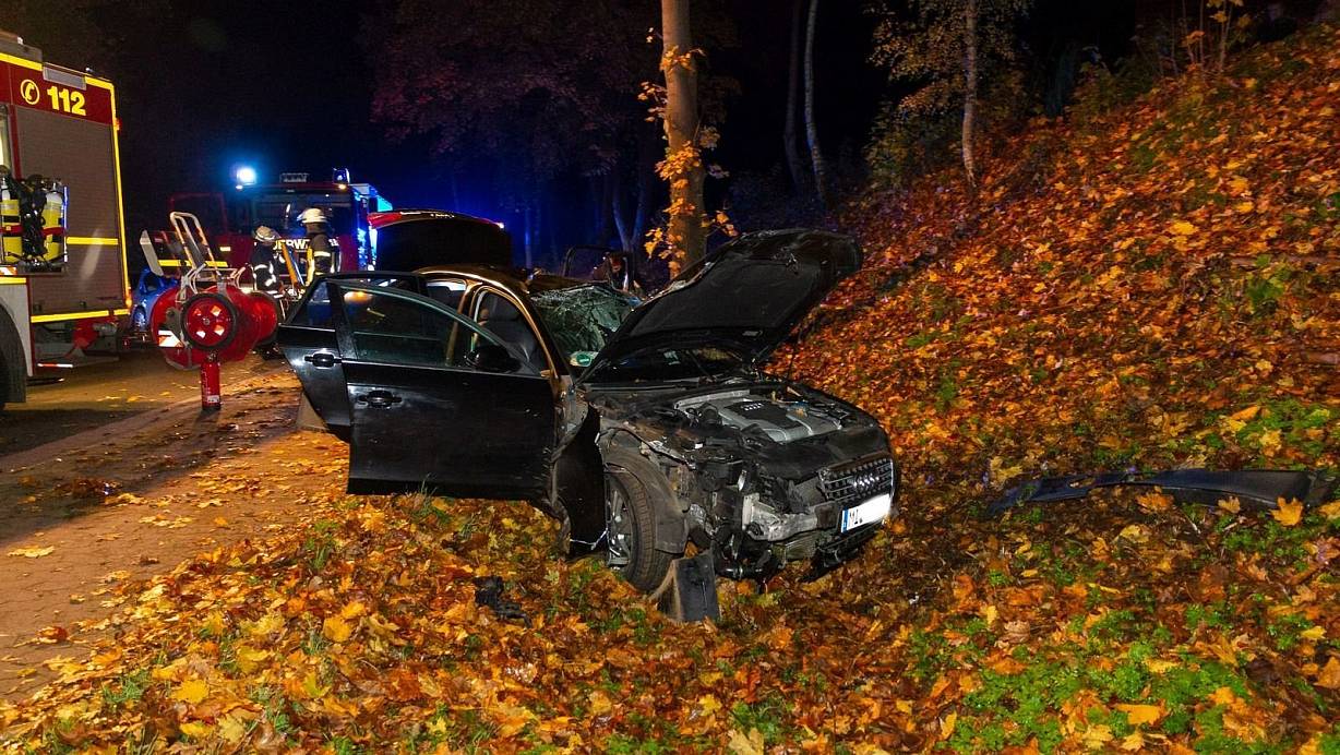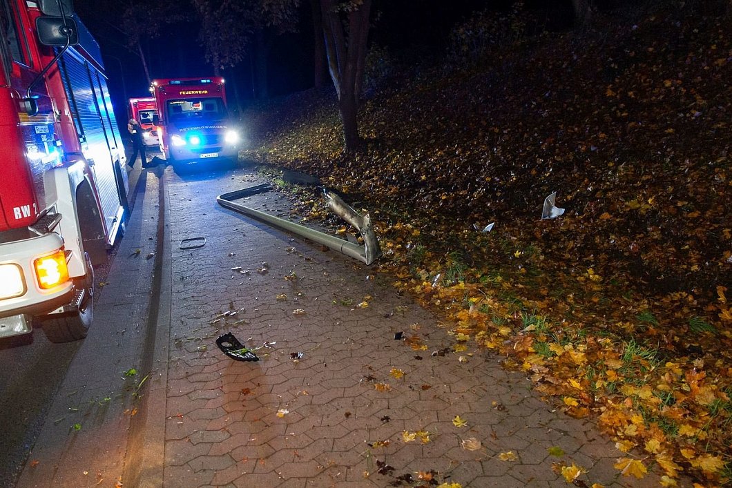 Ein schwarzer Audi war von Hausberge in Richtung Holzhausen unterwegs. In Höhe des Ortsschildes Holzhausen kam der PKW nach rechts von der Fahrbahn ab und geriet in den Seitenstreifen. Dort überfuhr der Wagen mehrere Schilder. Er schleuderte über die Vlothoer Straße und rammte auf der linken Seite eine Straßenlaterne, diese wurde durch die Kollision zerstört. Der Wagen schlug dann mit der Fahrerseite in einem Baum ein und kam schließlich zum Stehen.