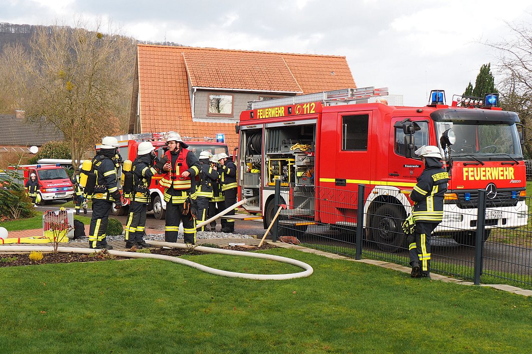 Bei Eintreffen der ersten Einsatzkräfte der Löschgruppe Holzhausen drang bereits dichter Brandrauch aus dem Gebäude. Ein Feuerwehrtrupp ging unter schwerem Atemschutz gegen den Brand vor. Das Feuer war in der Küche ausgebrochen und hatte dort auf eine Dunstabzugshaube übergegriffen. Das Feuer konnte schnell gelöscht werden.