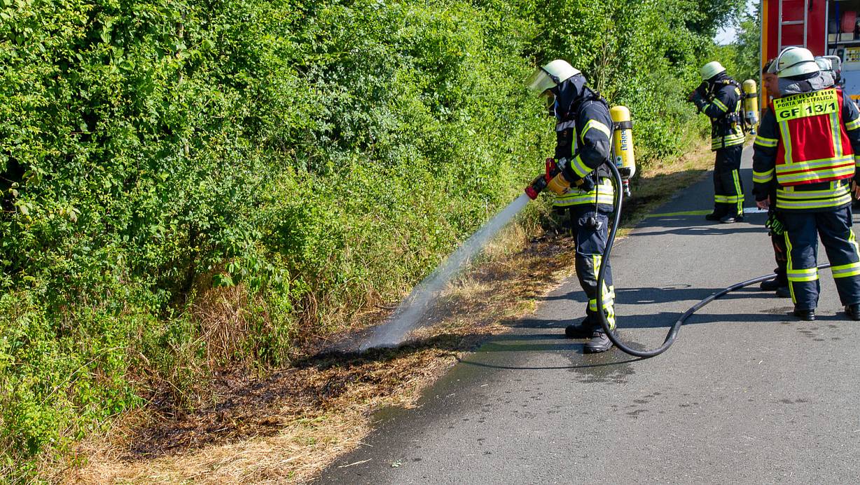 Am Samstag wurden Polizei und Feuerwehr am Nachmittag zu einem erneuten Heuballen-Brand nach Holzhausen zum Vogelparadies gerufen. Alle Brände konnten durch die Feuerwehr schnell bekämpft werden, ein Übergreifen auf Häuser konnte in Neesen und Barkhausen verhindert werden.