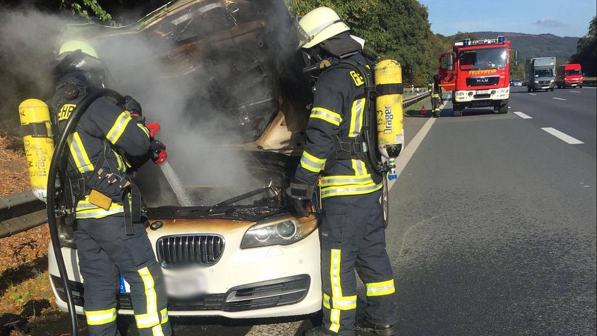 Motorraum eines BMWs fängt Feuer: Feuerwehreinsatz auf A2