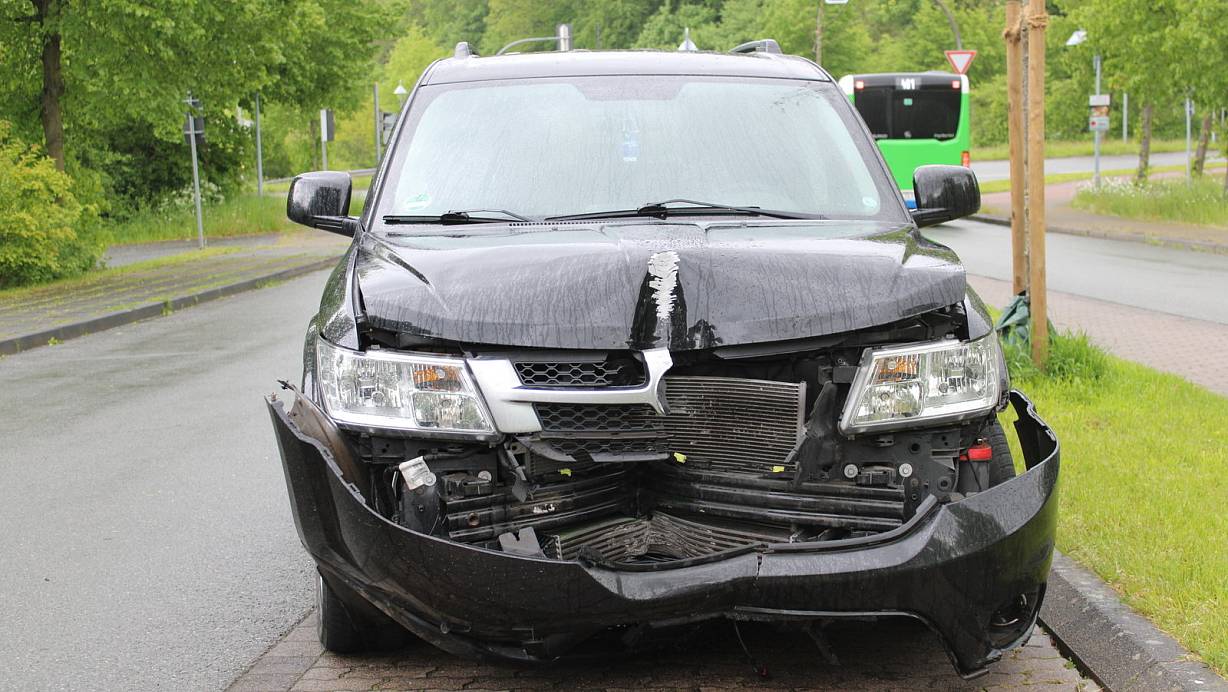 Der Mann fuhr mit seinem Pkw auf der Bundesstraße 482 in Richtung Autobahn und bog dann nach rechts auf die Portabrücke ab. Dabei kam der Fahrer mit seinem Fiat nach links von der Fahrbahn ab. Er überfuhr einen Ampelmast und ein Verkehrszeichen. Ohne anzuhalten, setzte er seine Fahrt fort und stellte seinen Wagen in circa 400 Meter Entfernung in der Straße "Unterm Willem" ab. Mehrere Zeugen sahen den Unfall und gaben der Polizei wichtige Informationen.