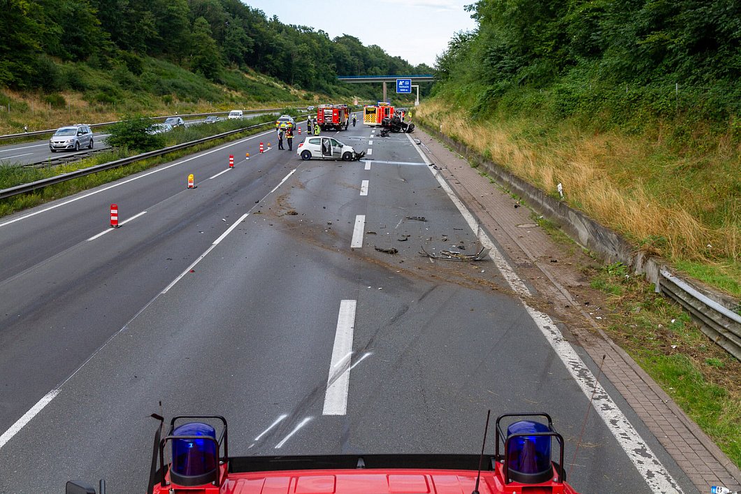 Wie die Freiwillige Feuerwehr Porta Westfalica mitteilt, wurden bei dem Unfall, der sich kurz hinter dem Rastplatz Fuchsgrund ereignet hat, drei Personen verletzt.