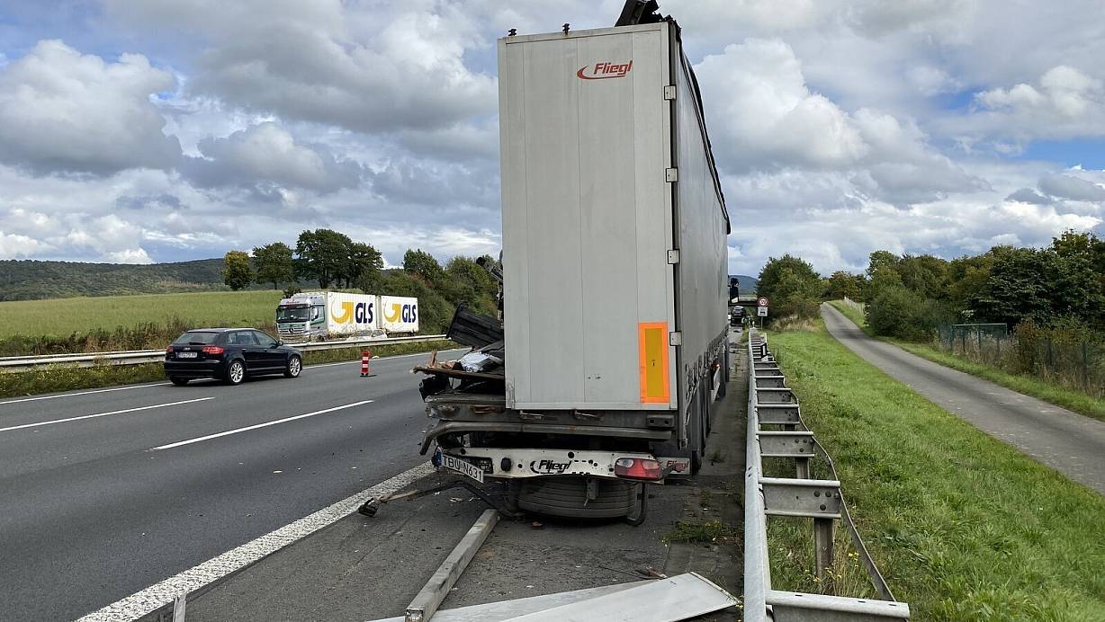 Bei einem Unfall mit zwei Lastwagen verliert einer seine Ladung. Bis das Material vollständig aufgesammelt ist, können noch mehrere Stunden vergehen.