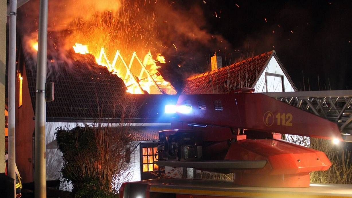 Die Flammen schlugen in der Silvesternacht meterhoch aus dem Dach des Wohnhauses in Porta Westfalica-Lerbeck. Foto: Polizei Minden-Lübbecke | © Polizei Minden-Lübbecke
