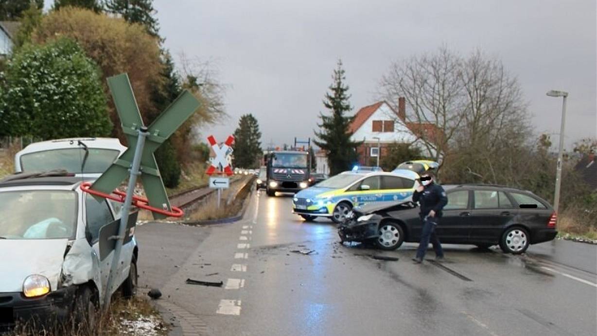 Laut Polizei fuhr zuvor eine 19 Jahre alte Rintelnerin gegen 15.55 Uhr in einem Renault zusammen mit zwei Beifahrern, die jeweils 20 und 24 Jahre alt sind, auf der genannten Straße in Richtung Rinteln. Zeitgleich wollte ein 47-jähriger Portaner mit seinem Mercedes von der Stohlmannstraße aus in eben diese Rintelner Straße abbiegen. Beide Autos stießen zusammen, wodurch der Kleinwagen auf das neben der Straße liegende Gleisbett rutschte und das dortige Andreaskreuz touchierte. Der Mercedes blieb auf der Fahrbahn - jedoch stark beschädigt.