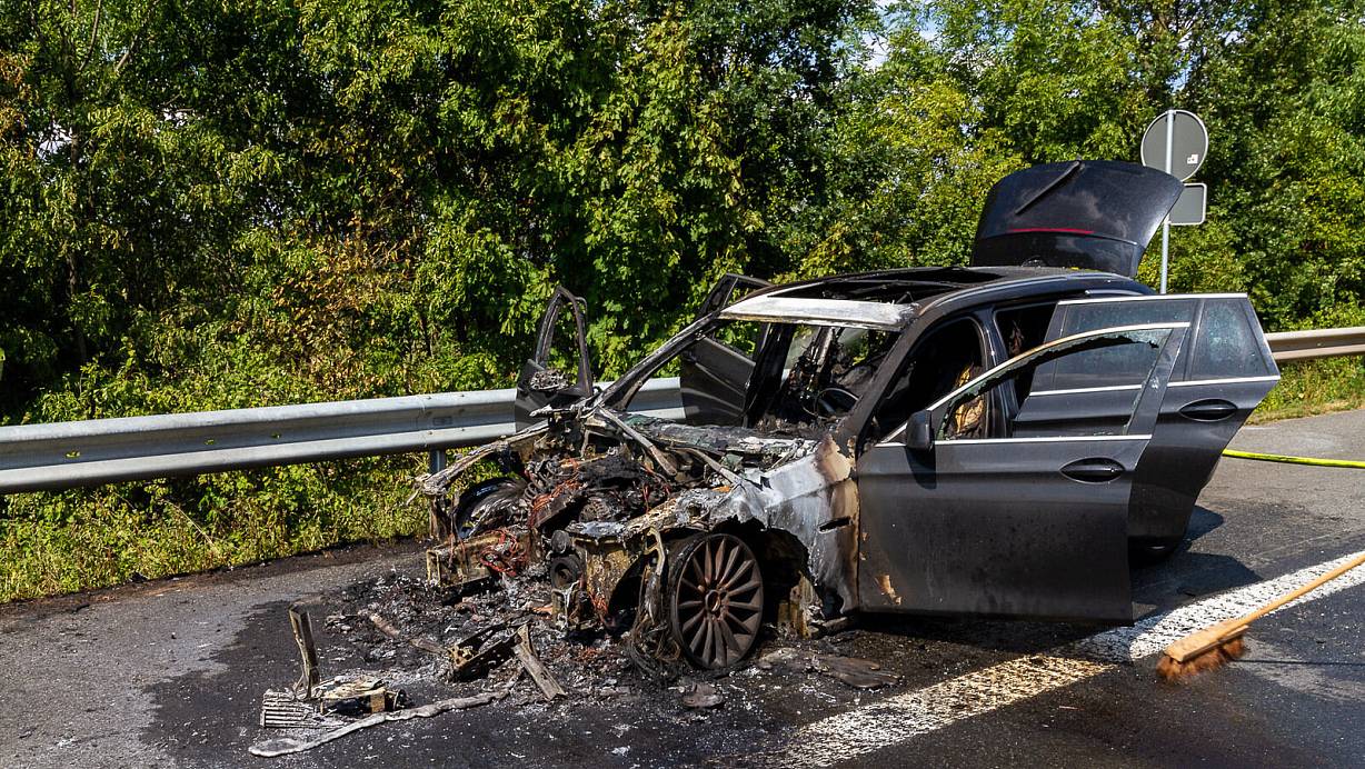 Während der laufenden Löscharbeiten näherte sich ein Auto aus der falschen Fahrrichtung. Glücklicherweise war die Fahrbahn zum Zeitpunkt noch gesperrt.