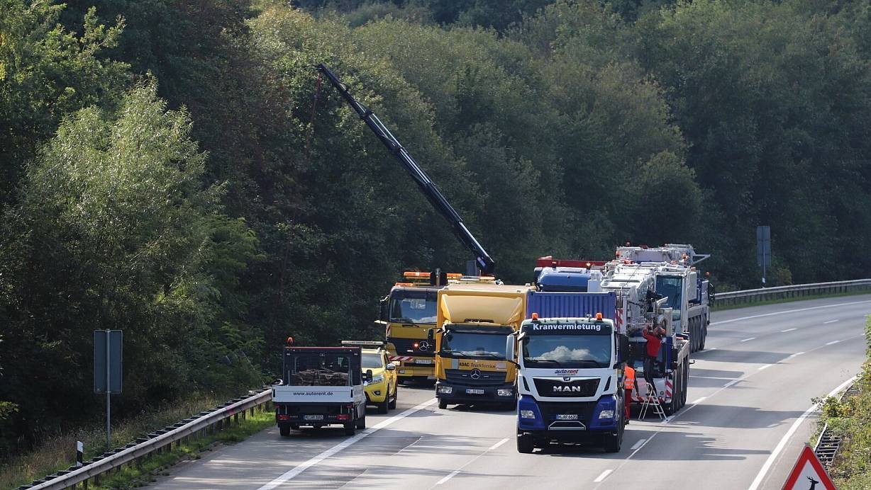 Bergung dauert fast 24 Stunden: Lkw-Fahrer übernachten auf der A2