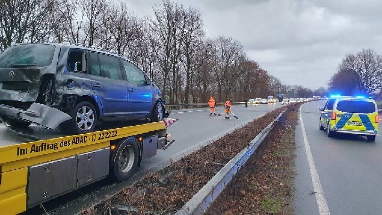 Nach ersten Informationen wird eine Person bei dem Unfall verletzt. Trümmerteile fliegen auf die Gegenfahrbahn, beteiligte Fahrzeuge werden abgeschleppt.