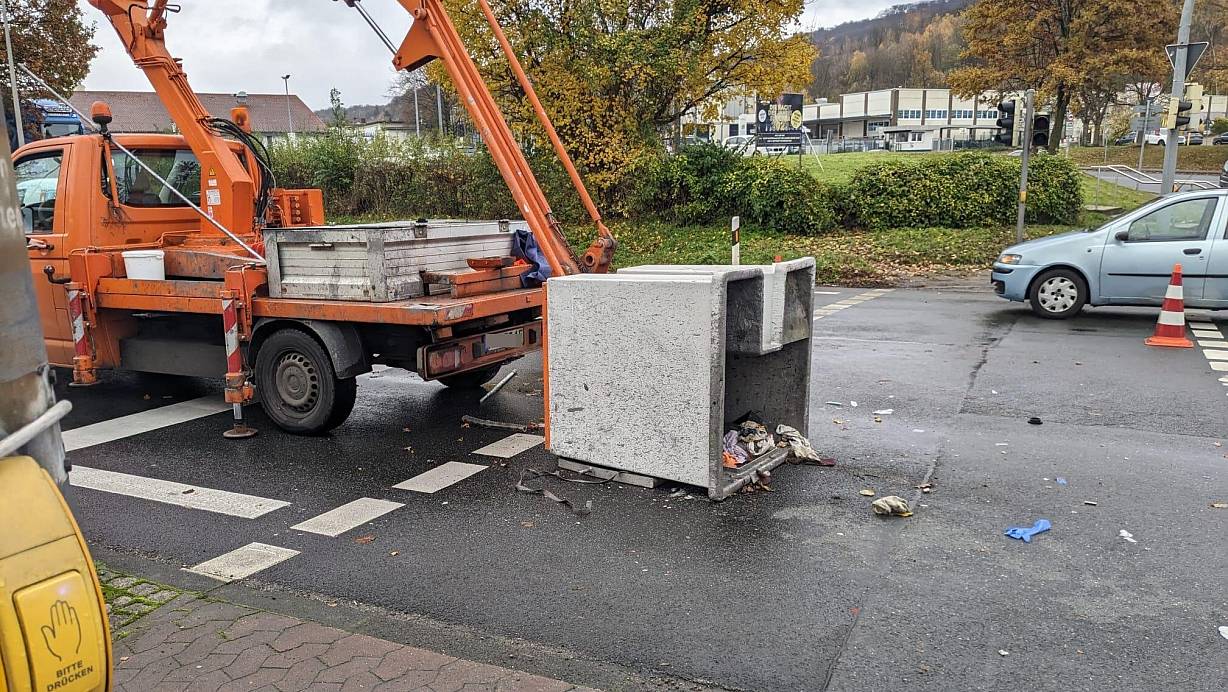 Die Arbeiter wollten Leuchtmittel in der Ampel auswechseln. Eine Spur der Bundesstraße war für die Bergungsarbeiten zwischenzeitlich gesperrt.
