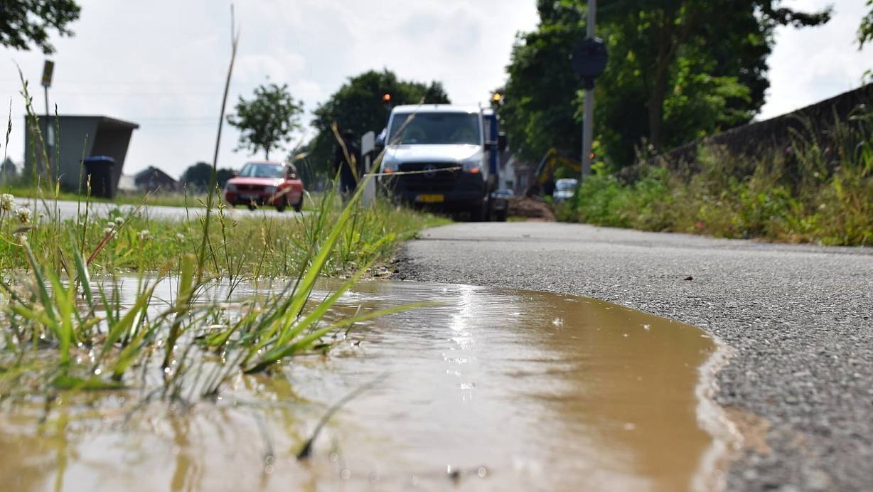 Anfang Juni 2021 stand das Wasser an der Straße Zur Porta: Arbeiter hatten eine Hauptwasserleitung getroffen, mehrere Ortsteile waren ohne Wasser. | © Thomas Lieske/Archiv