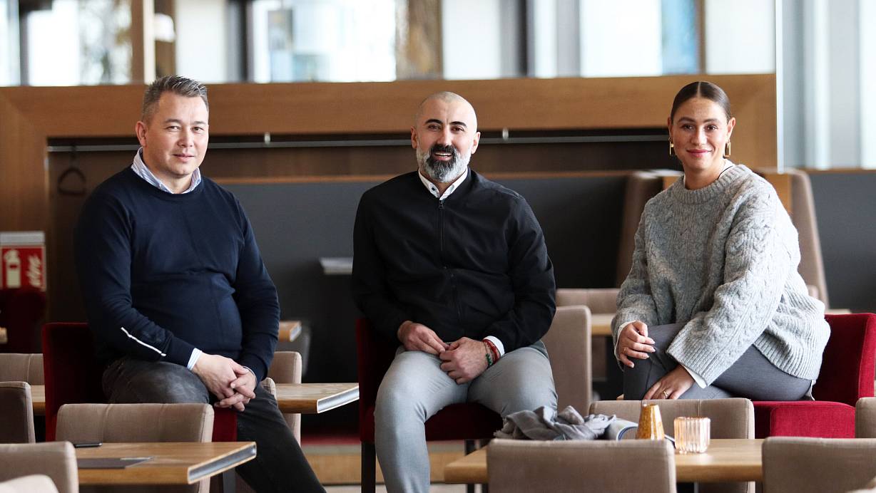 Im Denkmalrestaurant beschäftigt Ibrahim Hamad (Mitte) 25 Männer und Frauen. Dazu zählen Restaurantleiter Seng-Ming Liu und Alina Schnormeier, die sich um die Verwaltung des "Bella Vista" kümmert. MT-Foto: Alex Lehn | © Alex Lehn
