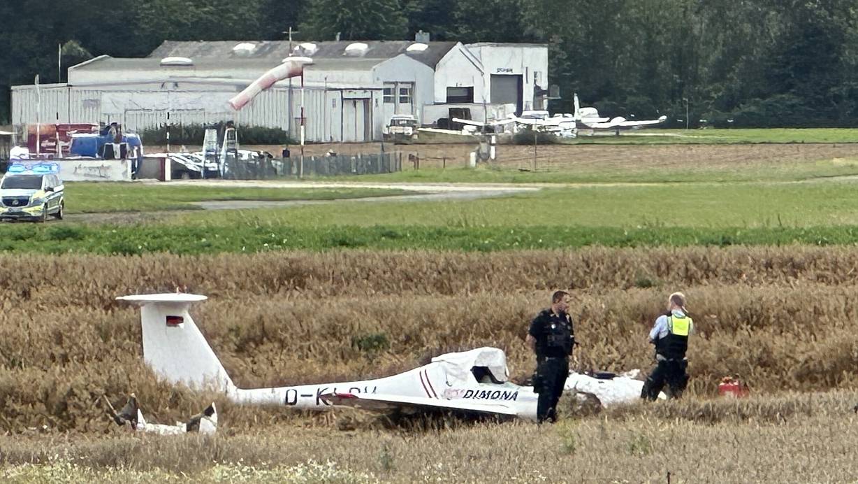Pilot schwerverletzt: Flugzeug stürzt kurz vor der Landung auf Portaner Flugplatz in Kornfeld