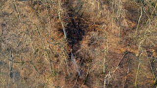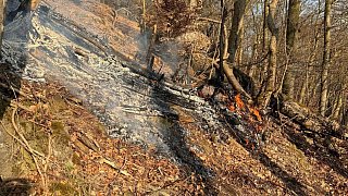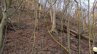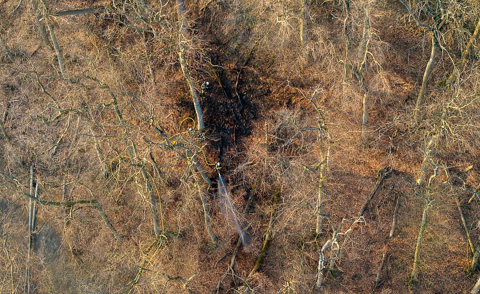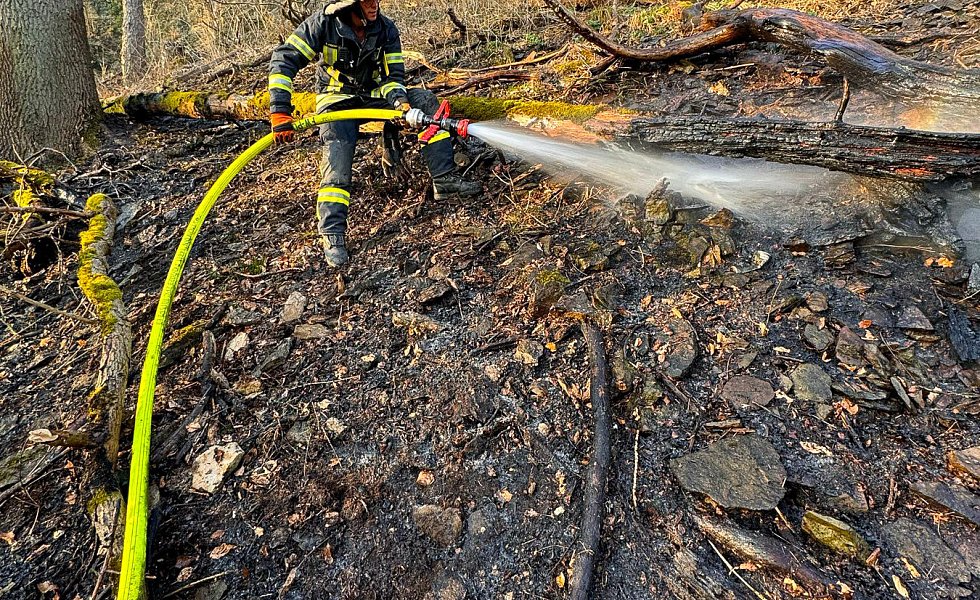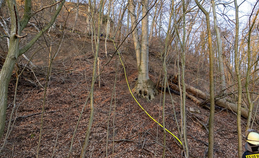 Vier Feuerwehrleuite aus Barkhausen mussten zunächst einen steilen Hang hochklettern, um an die Brandfläche heranzukommen.