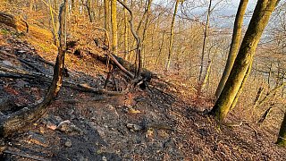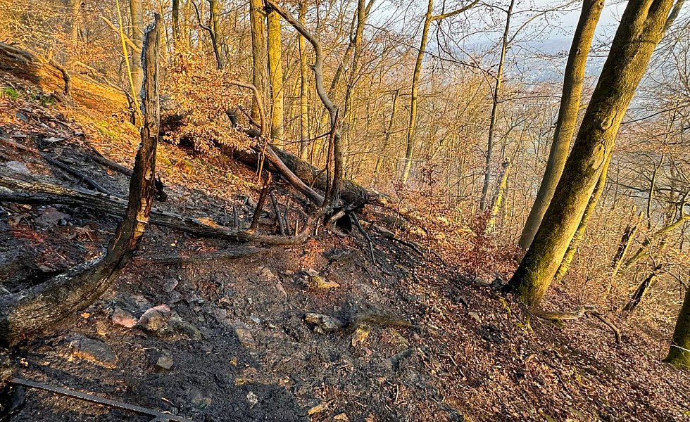 Am Wolfsschluchtweg unweit des Kaiser-Wilhelm-Denkmals ist ein Waldbrand ausgebrochen.