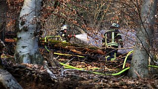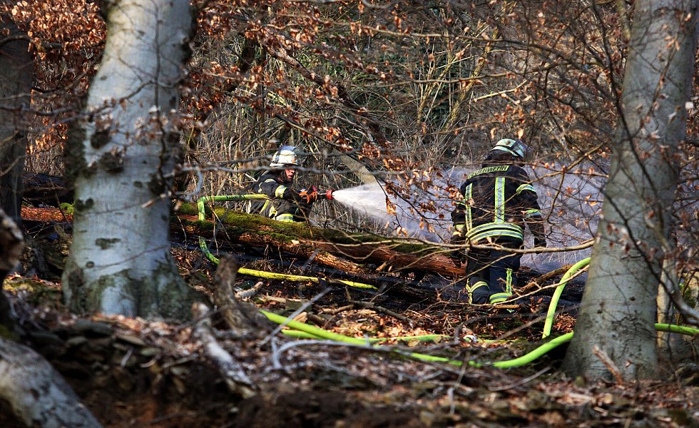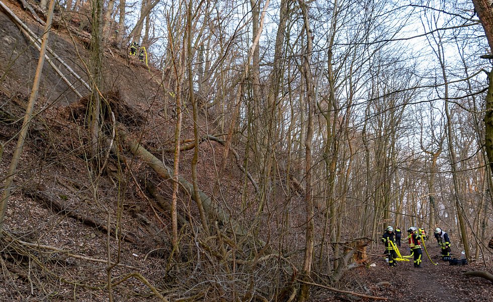 Die Feuerwehr hatte Schwierigkeiten im unwegsamen Gelände.