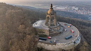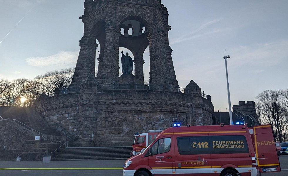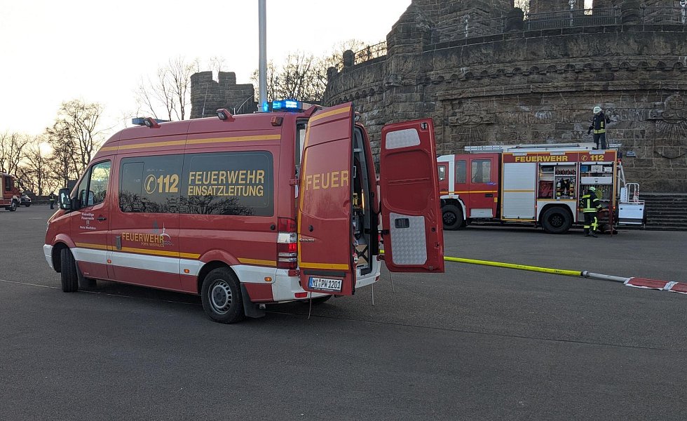 Die Einsatzkräfte nutzen den Platz vor dem Kaiser-Wilhelm-Denkmal als Basis.