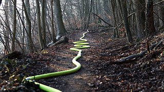 Die Drohnenaufnahme zeigt, wie viel Schlauch verlegt werden musste.