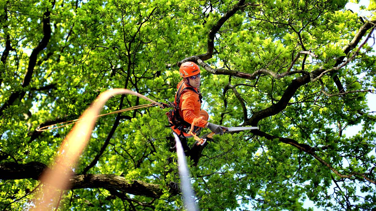 Baumkletterer Heiko Voß arbeitet in schwindelerregender Höhe