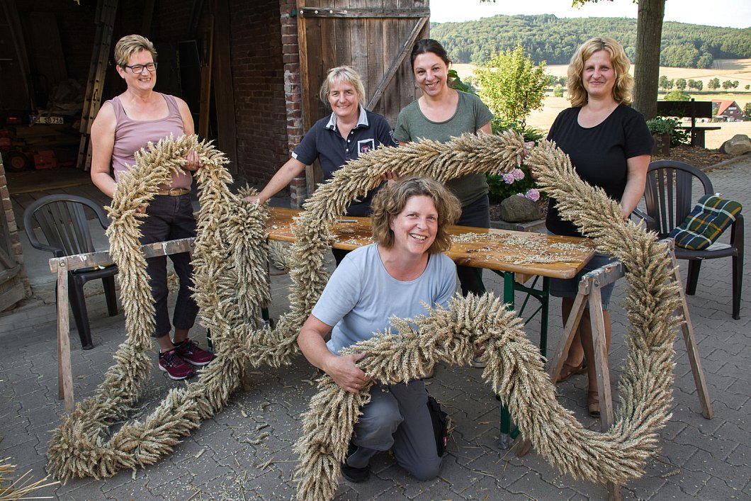 - Beim Festumzug zum Börninghauser Dorfjubiläum hat die Erntekrone, die die Landfrauen jetzt am Heddinghauser Backhaus gebunden haben, ihren ersten großen Auftritt: Dann ziert das Schmuckstück aus Weizenähren und Hafer den Festwagen der Eggetaler Landfrauen. Aber das bleibt nicht der einzige Anlass, bei dem die Krone zum Einsatz kommt.